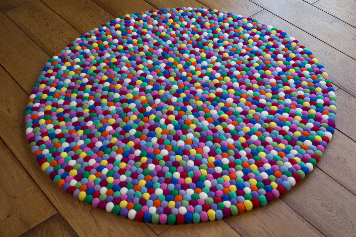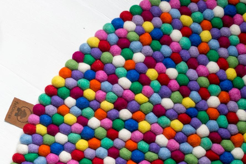 Postawienie stopy na takim dywanie to zupełnie nowe doznanie. Kulki są miłe w dotyku, a ich nieregularna powierzchnia masuje stopy. Zastosowana w nich sfilcowana wełna ociepla, wygłusza, oddycha… a przy tym jest w 100% naturalna.