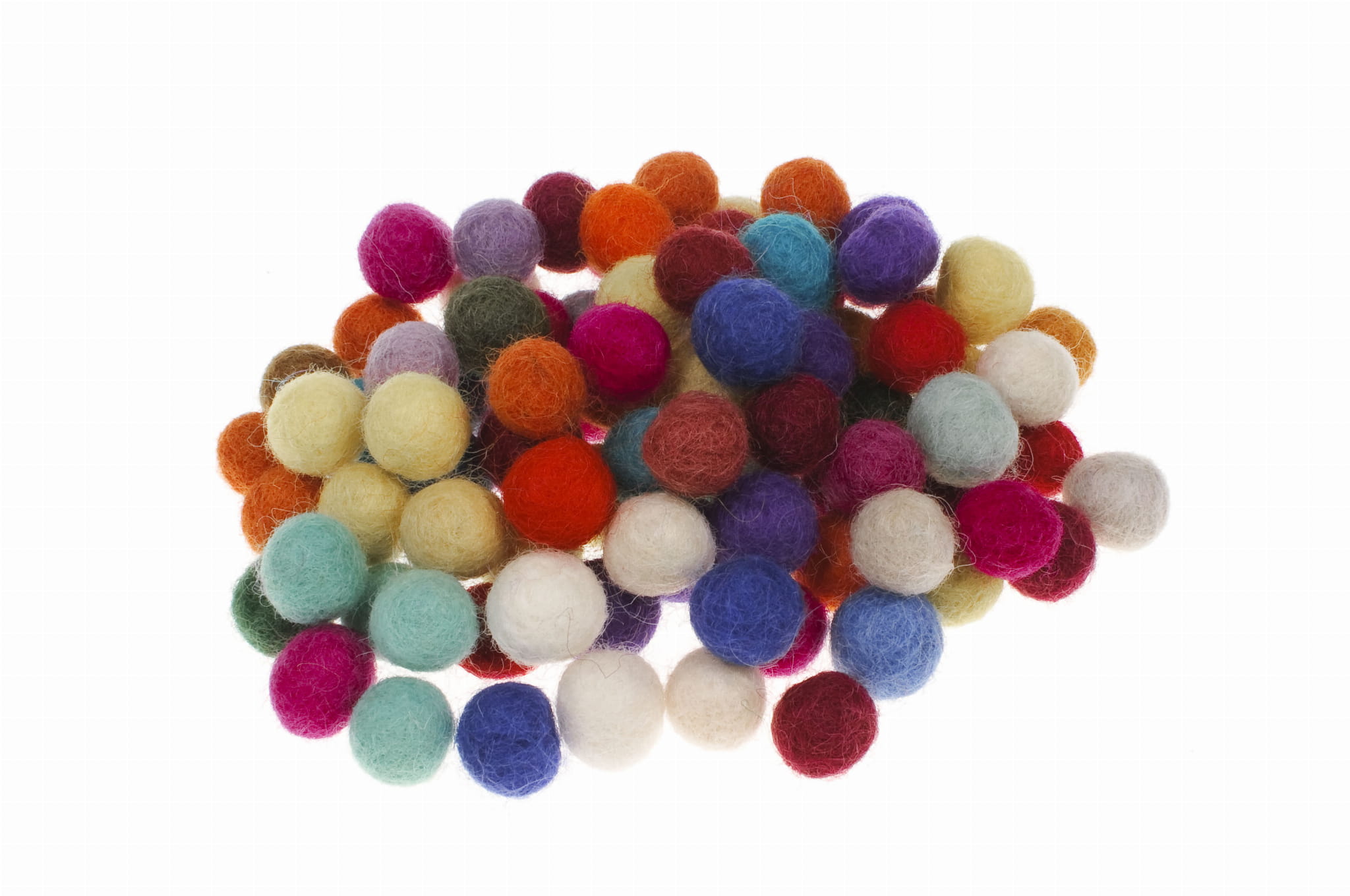 Kulki filcowe z Nepalu. Wykonane ręcznie z jednego z najstarszych wyrobów włókienniczych – filcu. Używany do produkcji filc powstaje w 100% z czystej, owczej wełny. Oferowane kulki mają ok. 1 cm średnicy i sprzedawane są w opakowaniach mix kolorów po 50 szt. Wyczaruj z nich piękne wyroby, które będą cieszyć Ciebie i Twoich bliskich.