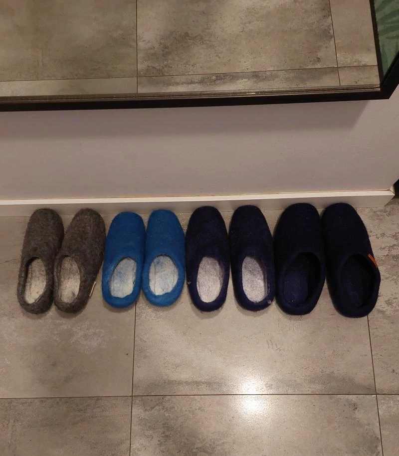 Papucie są w sam raz na zimę. Dlatego drugi raz je kupujemy. Bezproblemowa wymiana ze względu na niewłaściwy rozmiar. Wersja z podbiciem skórzanym mniej się ślizga i chyba będzie trwalsza 😊