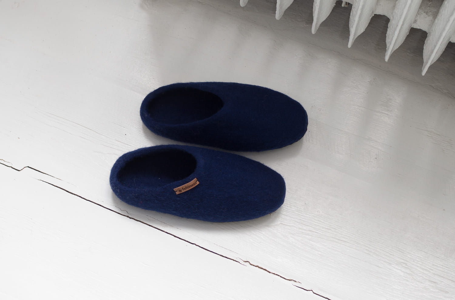 Paputy Granatowe z podeszwą – papcie wełniane