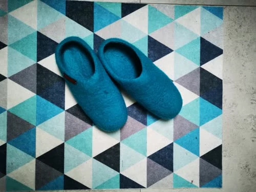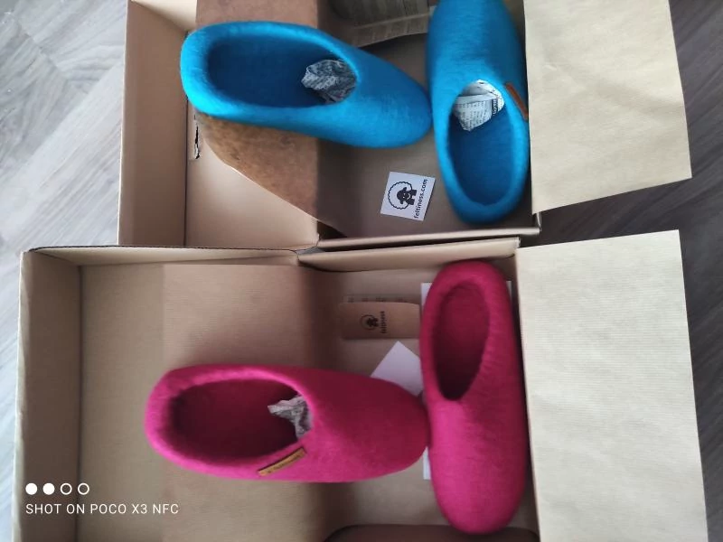 Tradycyjne kapcie z Nepalu. Wykonane ręcznie z jednego z najstarszych wyrobów włókienniczych – filcu. Używany do ich produkcji filc powstaje w 100% z czystej, owczej wełny.