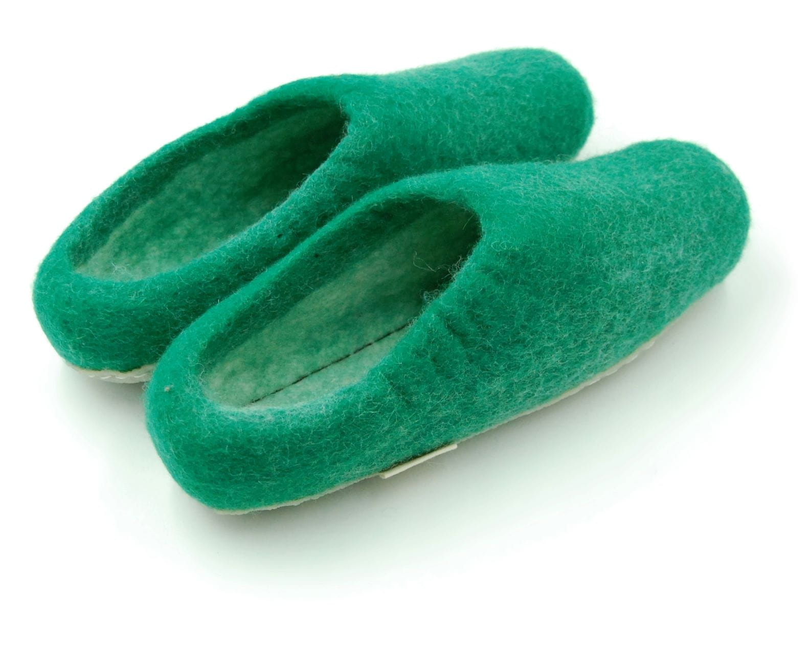 Paputy Zielone z podeszwą kauczukową – kapcie wełniane