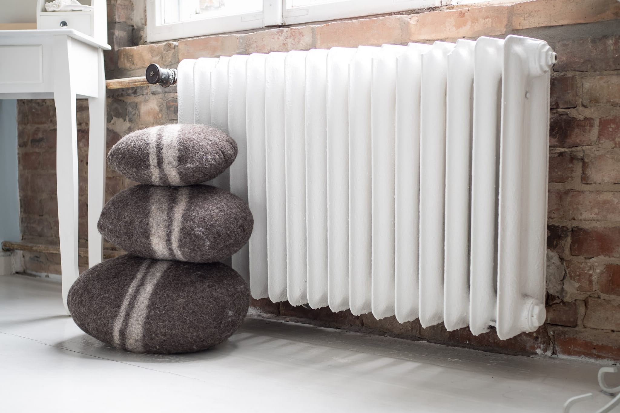 Poduszka ozdobna przypominająca kamienne otoczaki wykonana ręcznie w 100% z owczej wełny. Posiada unikatowy wzór i kształt, każda jest niepowtarzalna. Wypełniona sfilcowaną wełną. Dzięki użyciu wyłącznie naturalnych materiałów zapewnia przyjemne ciepło oraz izoluje przed zimnem a przy tym jest bardzo elastyczna i trwała w użytkowaniu.