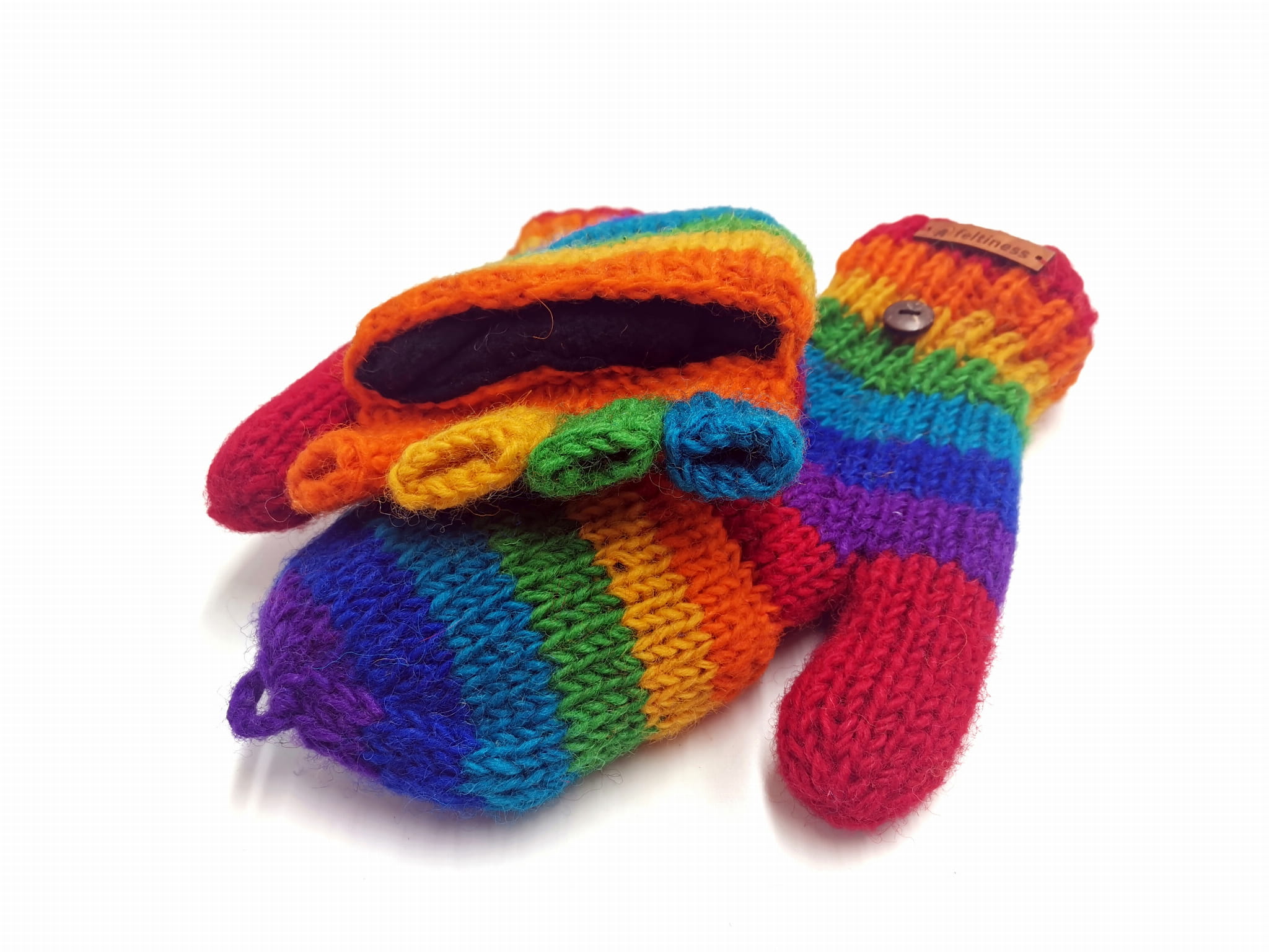 Wełniane rękawiczki bez palców. Posiadają klapkę zamykaną na guzik, którą w razie potrzeby możesz osłonic odkryte końcówki palców przed mrozem. Rękawiczki robione są ręcznie w Nepalu z naturalnej wełny owczej. Są niezastąpione zwłaszcza zimową porą. W każdej sytuacji, kiedy akurat potrzebna Ci jest pełna sprawność Twoich palców, ale niekoniecznie chciałbyś zdejmować rękawiczki z dłoni. Od wewnątrz rękawiczki podszyte są polarową podszewką. Raz się do nich przekonasz, a nigdy już nie będziesz chciał innych.
