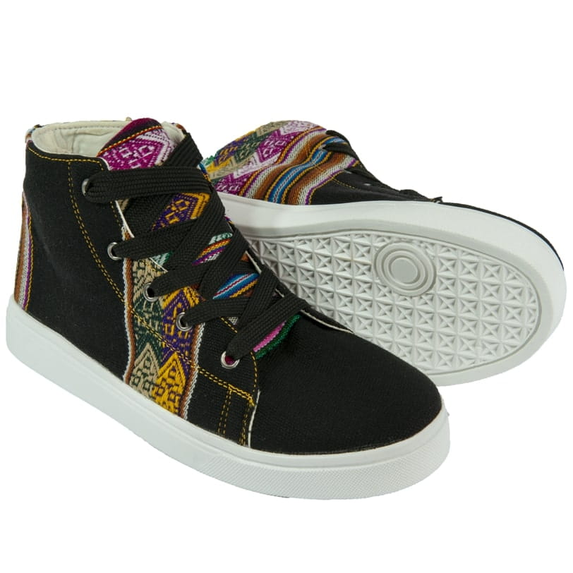 Oryginalne buty Inkamos wykonane z kolorowej tkaniny zdobionej tradycyjnymi wzorami kultury Inków. Materiał ten zwany Manta Peruana jest tkany na obszarze dawnego królestwa Inków od niepamiętnych czasów, kiedyś ręcznie a współcześnie z wykorzystaniem także bardzo prostych maszyn i narzędzi.