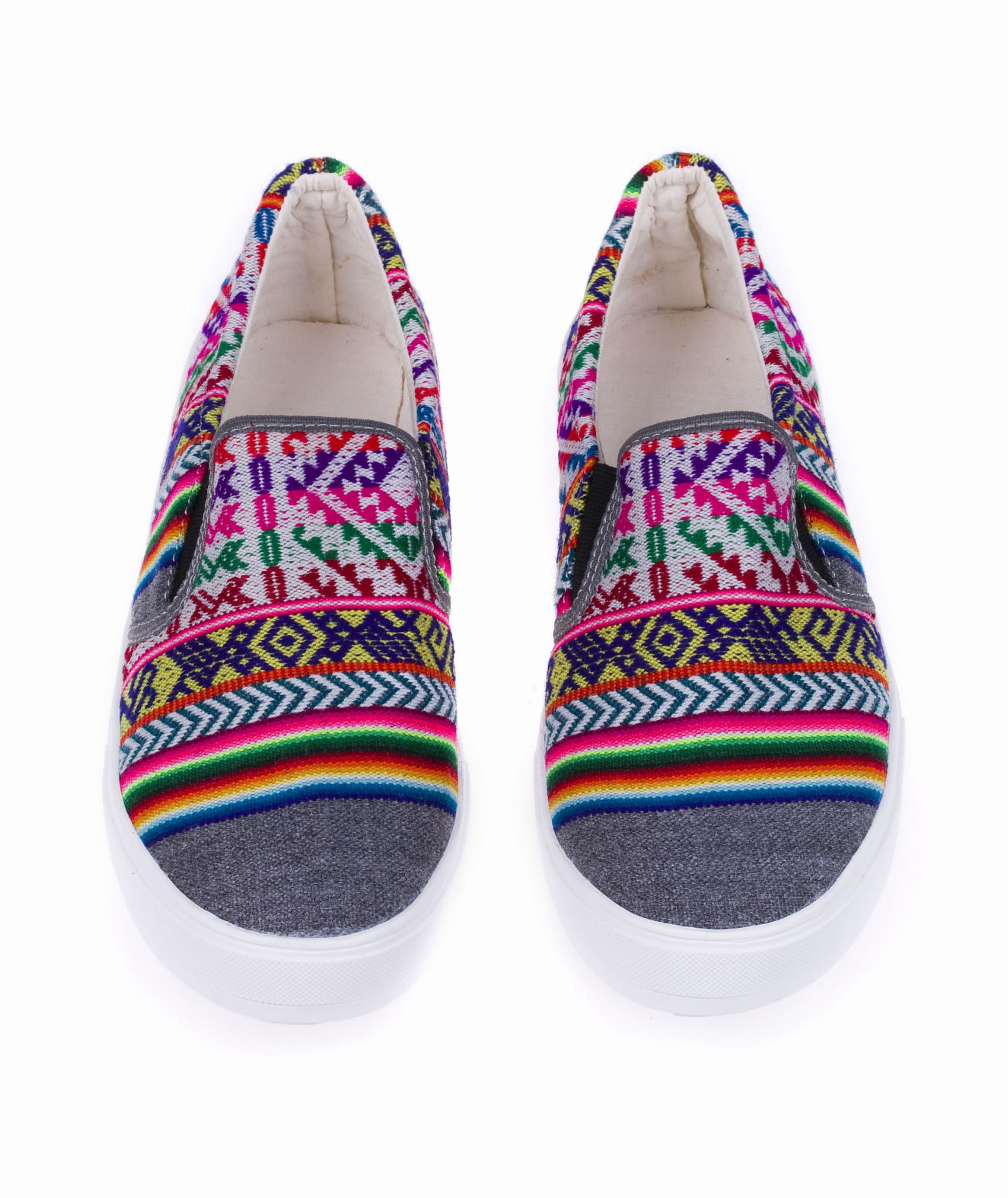 Oryginalne buty Inkamos wykonane z kolorowej tkaniny zdobionej tradycyjnymi wzorami kultury Inków. Materiał ten zwany Manta Peruana jest tkany na obszarze dawnego królestwa Inków od niepamiętnych czasów, kiedyś ręcznie a współcześnie z wykorzystaniem także bardzo prostych maszyn i narzędzi.